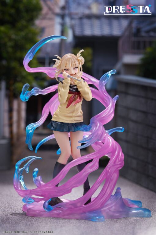 De beruchte Himiko Toga uit My Hero Academia komt tot leven in deze Dressta Statue van 20 cm! Met haar kenmerkende schooluniform en een speelse maar gevaarlijk ondeugende lach, straalt ze haar typische charme uit. De dynamische effecten rondom haar, uitgevoerd in een prachtige mix van roze en blauw transparant materiaal, geven de figure extra energie en maken het alsof ze midden in actie is.
