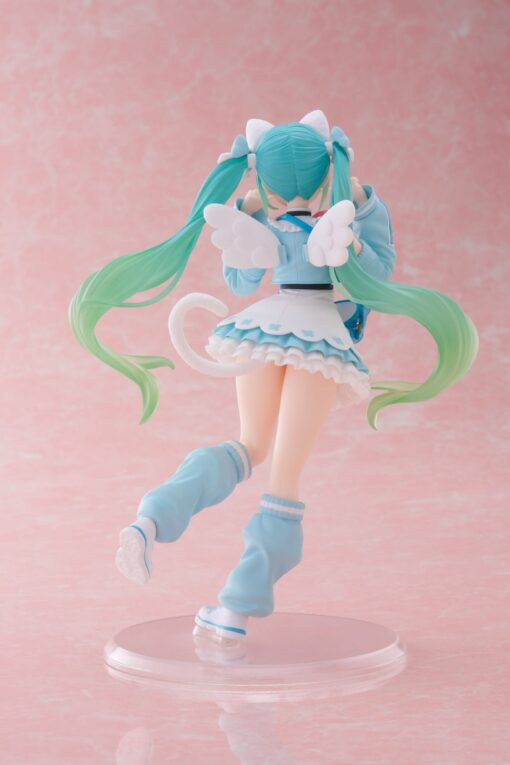De dynamische beweging van haar lange turquoise haren en haar opgewekte uitstraling zorgen ervoor dat deze figure een echte blikvanger is in elke collectie. Een must-have voor fans die houden van de luchtige en schattige kant van Miku!